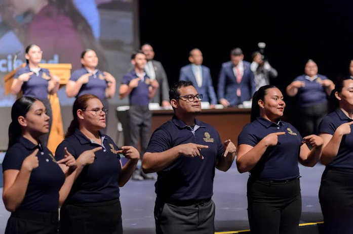 Para cerrar la ceremonia, llamó la atención un grupo de estudiantes de la UdeC que interpretó el Himno universitario en la Lengua de Señas Mexicana.