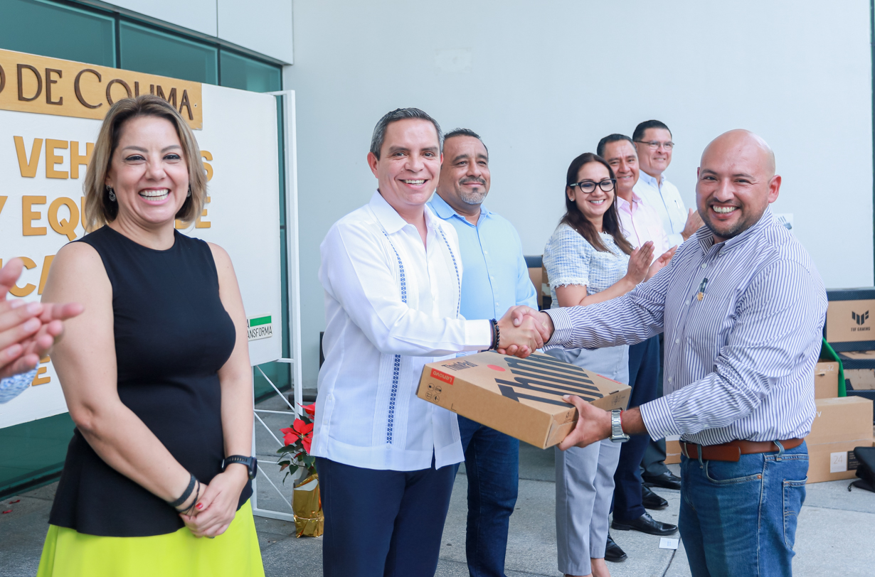 Con una inversión de 3 millones 639 mil 038 pesos, este lunes Christian Jorge Torres Ortiz Zermeño, rector de la Universidad de Colima, entregó 4 vehículos oficiales, uno para la Dirección General de Servicios Universitarios, dos para la Delegación Tecomán y uno más para la Delegación Coquimatlán. También equipo de cómputo, mobiliario y equipo audiovisual para el Archivo de Concentración y las direcciones generales de Prensa y de Televisión Universitaria.