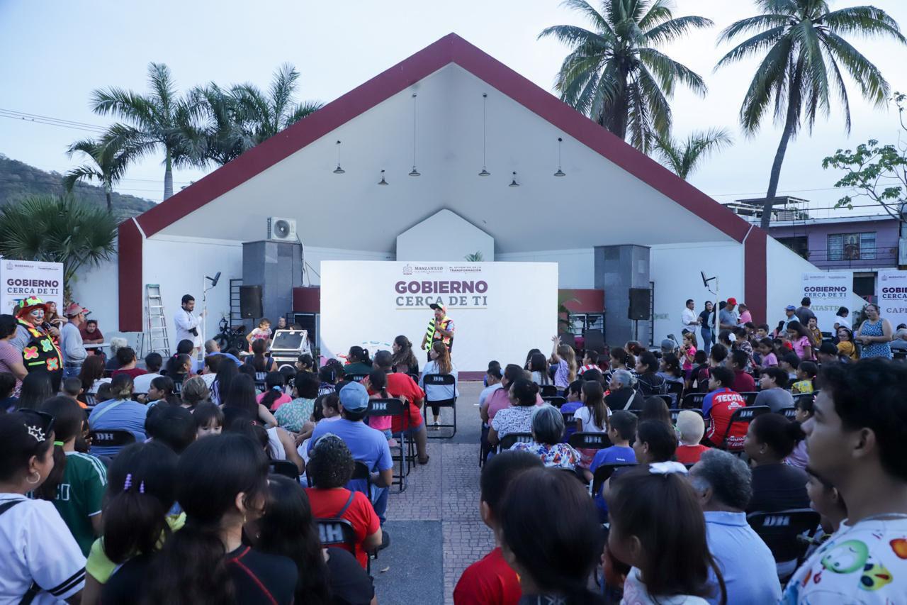 Al finalizar el encuentro, la alcaldesa convivió con niñas y niños de la colonia quienes también tuvieron una divertida noche con un show de payasos y rifa de bicicletas.