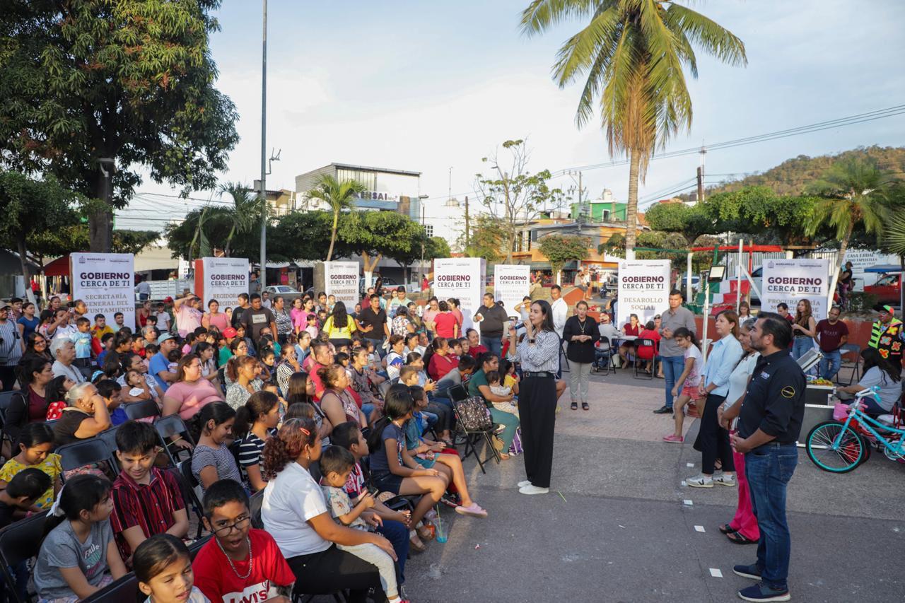 Este lunes, la presidenta municipal de Manzanillo, Rosi Bayardo, realizó el primer encuentro cercano y de servicios “Gobierno Cerca De Ti” en la colonia Tapeixtles, para que la ciudadanía aprovechara los trámites, programas y asesorías de las y los directores del Ayuntamiento, así como la oportunidad de ser atendidas y atendidos por la alcaldesa.