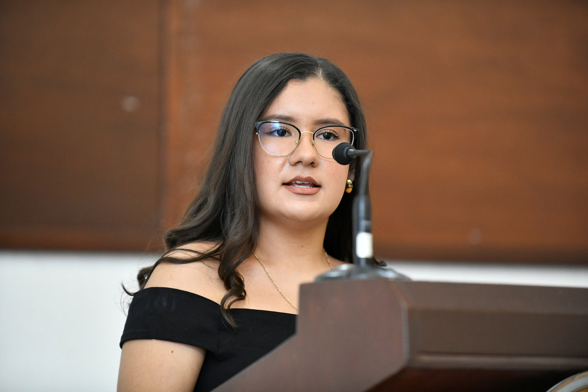 En representación de los egresados galardonados, Joanna Elizabeth Valencia Rosas, egresada de la Licenciatura en Negocios Internacionales versión en inglés, dirigió un mensaje a sus compañeros y a la comunidad universitaria. “Hoy formamos parte del 1.75% de los egresados que han obtenido este reconocimiento a nivel nacional, lo cual es motivo de gran orgullo. La Universidad de Colima reconoce nuestra constancia y disciplina, valores que nos llevaron a alcanzar la excelencia académica”.