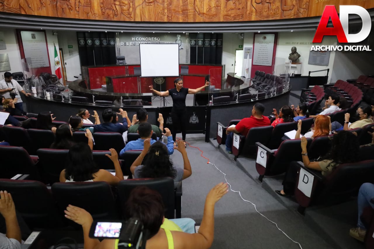 Este martes inició el Curso de Lengua de Señas Mexicana “Mis manos también hablan”, por iniciativa de la diputada Sharon Díaz. Esta primera sesión fue impartida por la intérprete Paola Cristina García, quien introdujo conceptos básicos y nociones para comprender de mejor manera esta lengua.