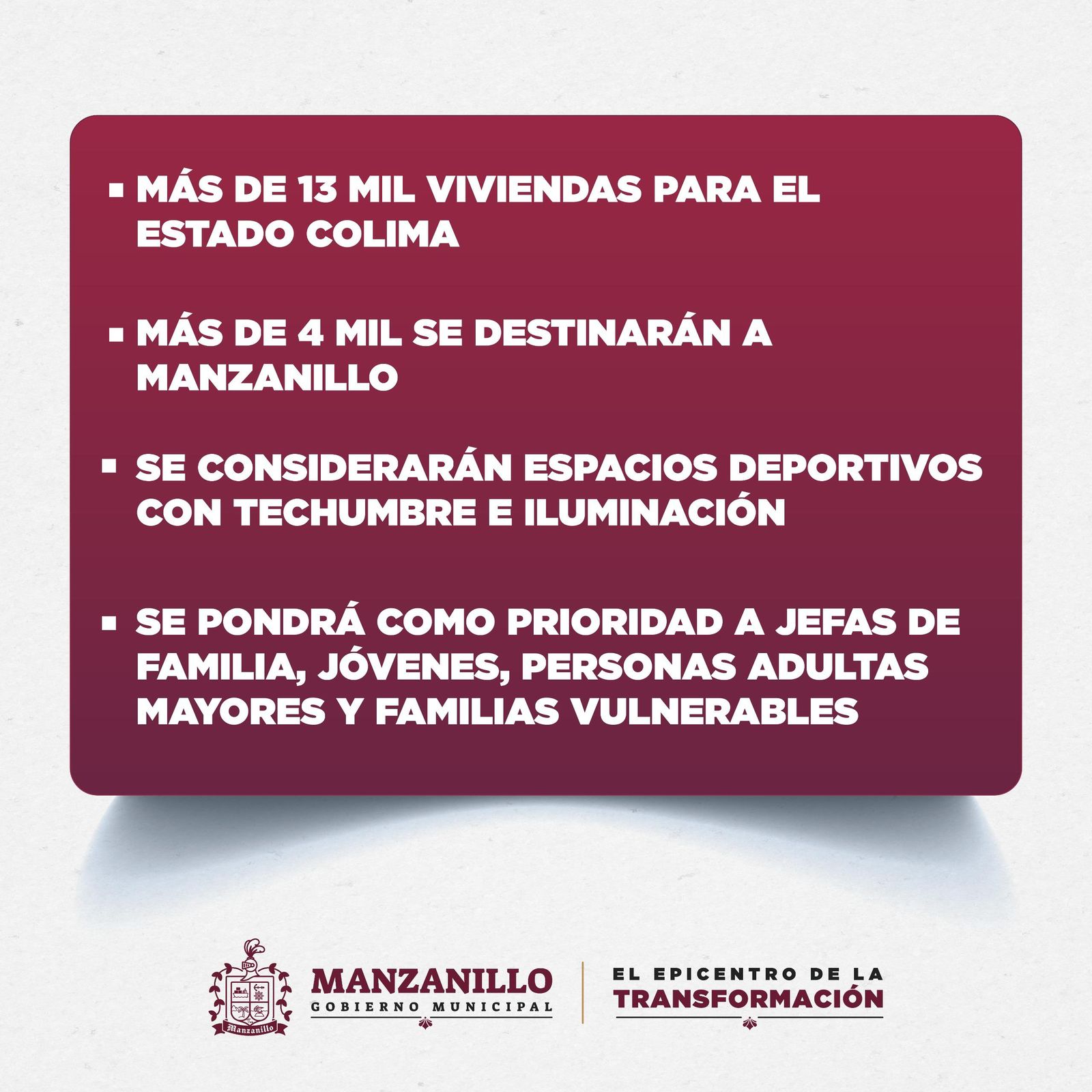 Bayardo resaltó que Manzanillo fue el primer municipio en presentar propuestas de predios para la construcción de las Viviendas del Bienestar, por lo que será el punto de arranque de este importante proyecto en la entidad este mismo año.