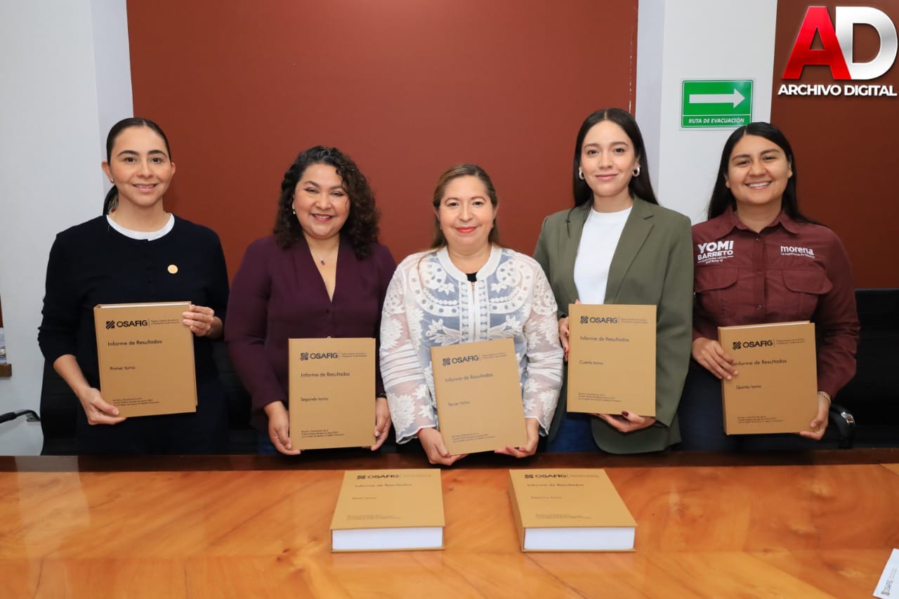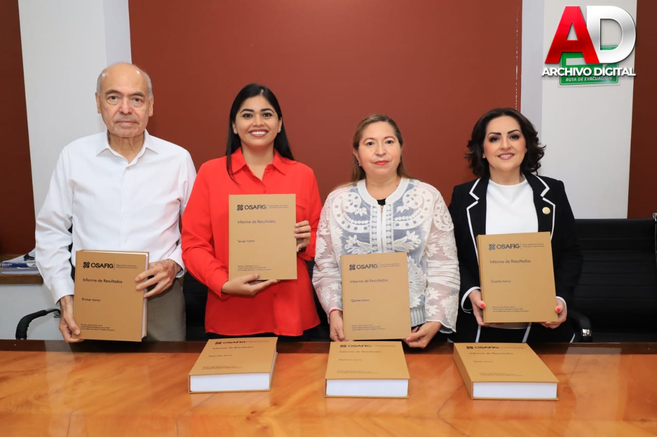 Por su parte la titular del OSAFIG mencionó que, los tipos de auditoría que se realizaron fueron: financiera, obra pública, desarrollo urbano, desempeño y control interno. Asimismo, expuso que, entre los resultados del ejercicio de fiscalización, se encontraron 6 mil 70 hallazgos, de los cuales 2 mil 58 corresponden a recomendaciones no atendidas y 4 mil 812 corresponden a observaciones no solventadas.