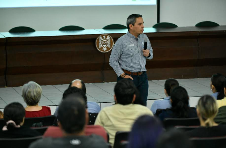 El rector de la Universidad de Colima, Christian Jorge Torres Ortiz Zermeño, dio la bienvenida al nuevo personal que se incorpora a diversas actividades en la casa de estudios, este martes por la tarde durante una jornada de inducción a la UdeC organizada por la Dirección General de Recursos Humanos, que inició a las 10 de la mañana.