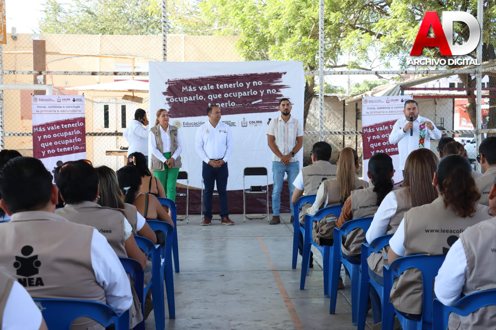 Este viernes, el presidente municipal de Tecomán, Armando Reyna Magaña, asistió al arranque del programa “Más vale tenerlo y no ocuparlo, que ocuparlo y no tenerlo” en la comunidad de Cerro de Ortega; impulsado por el Instituto Estatal de Educación para Adultos (IEEA).