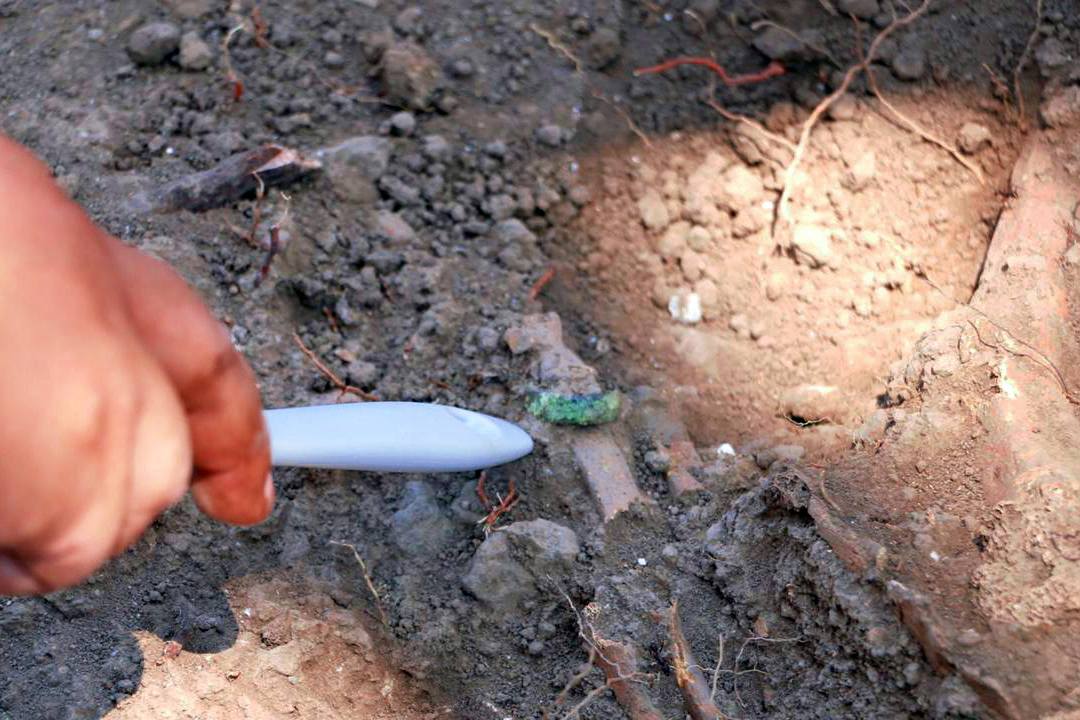 Los aspersores de agua, la lluvia y el viento también contribuyeron a que poco a poco estos vestigios quedaran expuestos. Otro factor determinante fueron las raíces cercanas de los árboles, pues éstas las “abrazaron” y llevaron poco a poco los restos humanos hasta la superficie.