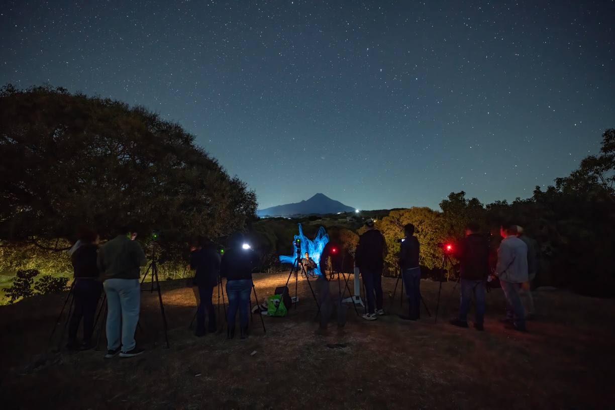*Una de las experiencias más destacadas fue la sesión de fotografía nocturna, realizada en las instalaciones de la Casa del Volcán de la UdeC, donde los asistentes exploraron las posibilidades artísticas de la luz y el entorno natural.