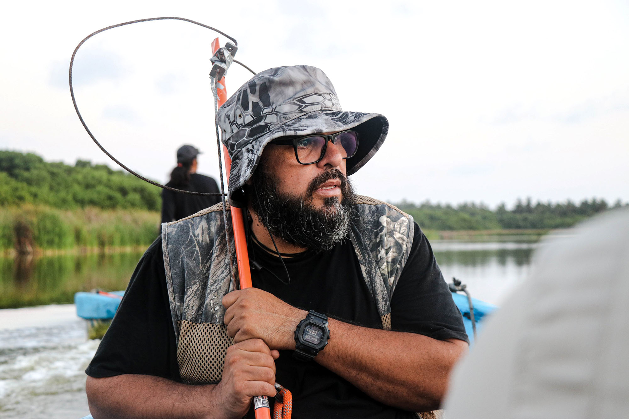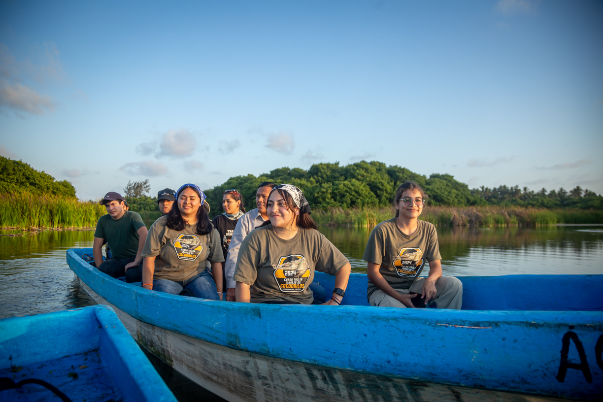 Por la tarde, a bordo de tres lanchas: “Jacana”, “Águila” y “Pelícano”, la expedición para el monitoreo de cocodrilos contó con la guía de un equipo de expertos: el maestro Sergio Aguilar Olguín, especialista en reptiles y docente de la UdeC y María Cruz Rivera Rodríguez, directora del Tortugario, así como Álvaro Alexander Estopín Robles y Boris Khazina, responsables de los departamentos de Educación Ambiental y del Programa de Tortugas Marinas, respectivamente, de dicho centro ecológico.