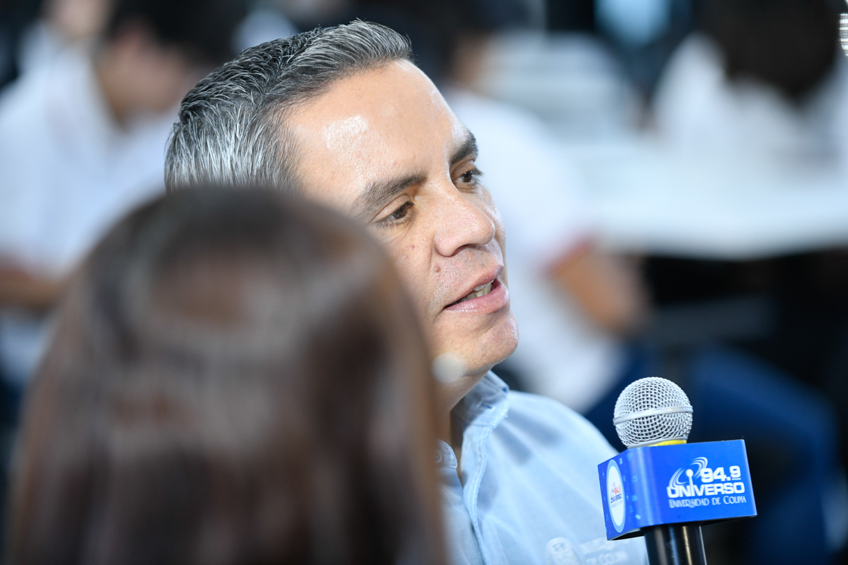 Uno de los temas destacados en el programa, que conducen la Dra. Marina Vázquez y el Mtro. José Ferruzca, fue el curso PreparaFEC, una iniciativa de la Federación de Estudiantes Colimenses (FEC) que este año incluyó a madres y padres de familia. “Me parece muy importante que las familias se involucren en los procesos educativos de sus hijas e hijos”, expresó el rector.