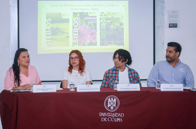 En el marco de la semana FalCom, este martes se presentó la Gaceta de Lengua y Literatura “Destellos”, en uno de los salones de la Facultad de Letras y Comunicación de la Universidad de Colima. Esta publicación, elaborada por estudiantes con el acompañamiento de docentes, reúne textos literarios y visuales provenientes sobre todo de las licenciaturas que ofrece la facultad, aunque también participan alumnos de otras carreras.
