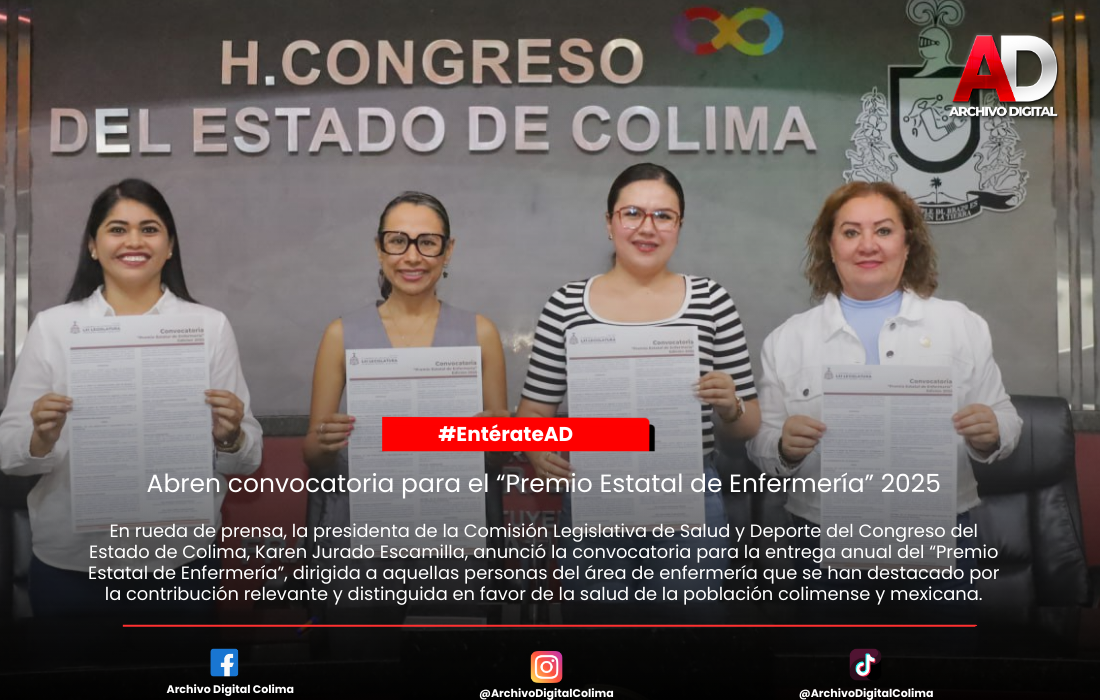 En rueda de prensa, la presidenta de la Comisión Legislativa de Salud y Deporte del Congreso del Estado de Colima, Karen Jurado Escamilla, anunció la convocatoria para la entrega anual del “Premio Estatal de Enfermería”, dirigida a aquellas personas del área de enfermería que se han destacado por la contribución relevante y distinguida en favor de la salud de la población colimense y mexicana.