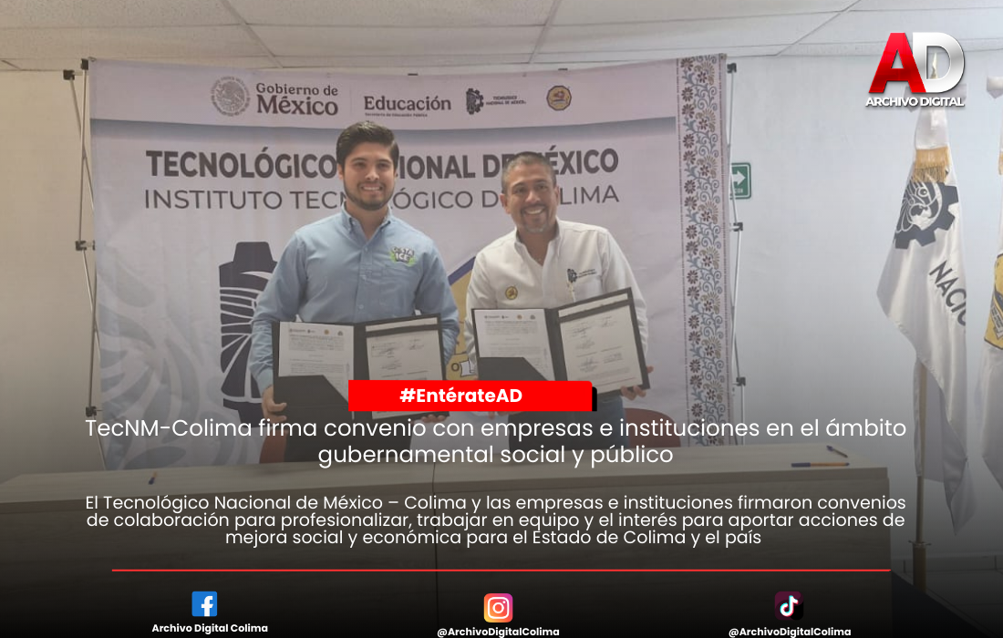 Añadió que la firma se realizó entre el TecNM-Colima empresas e instituciones en el ámbito gubernamental social y público.
