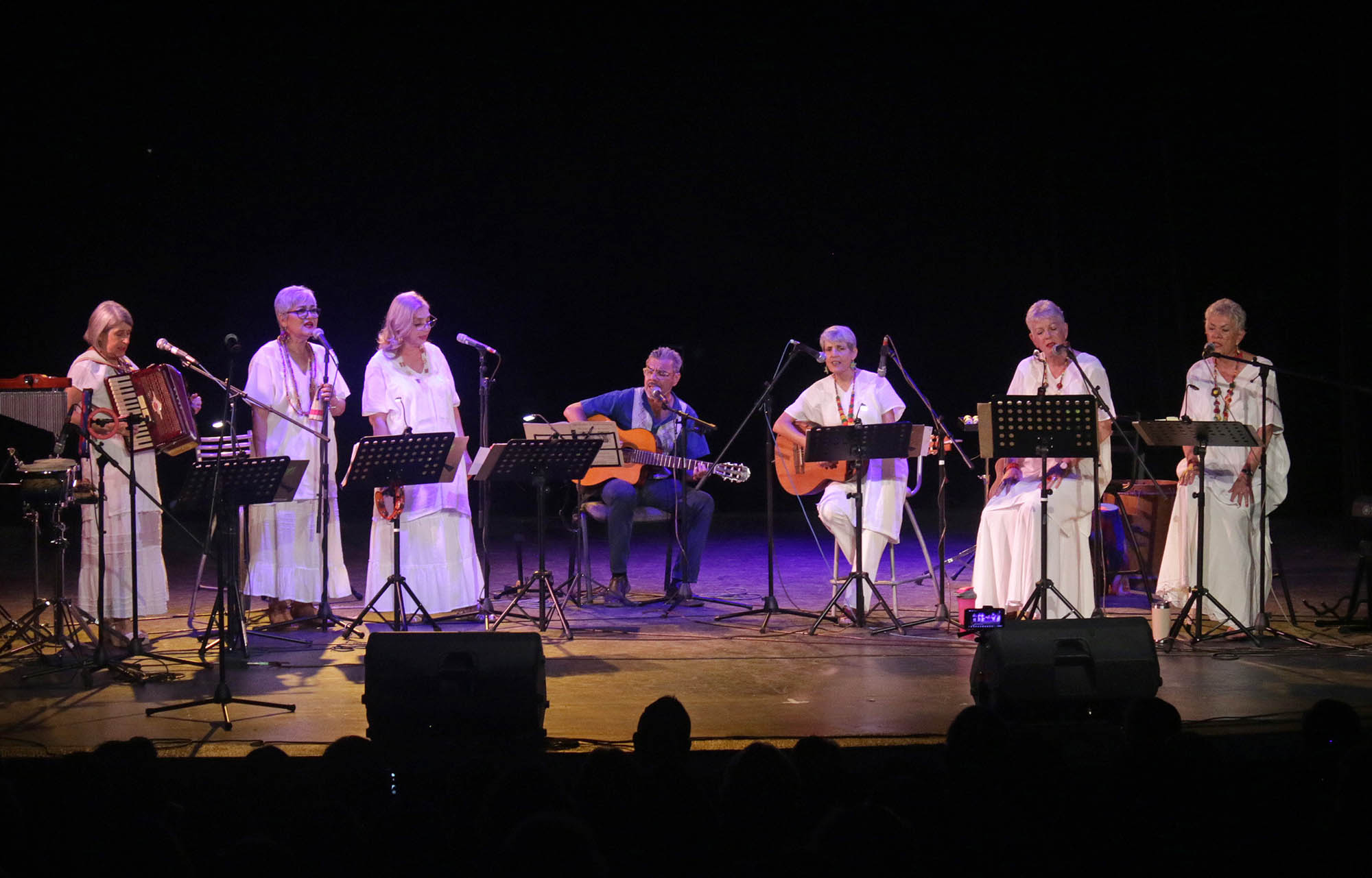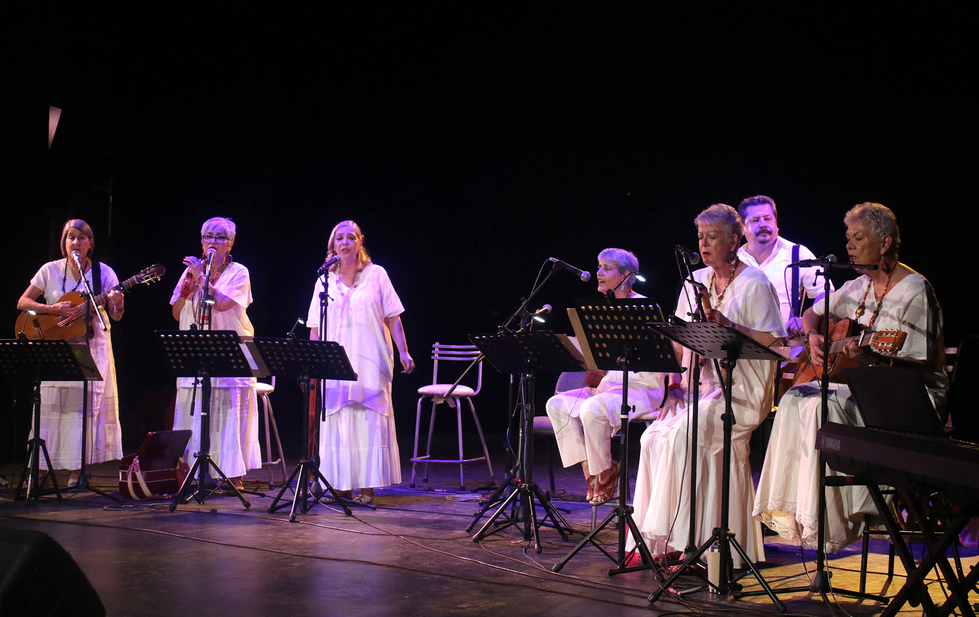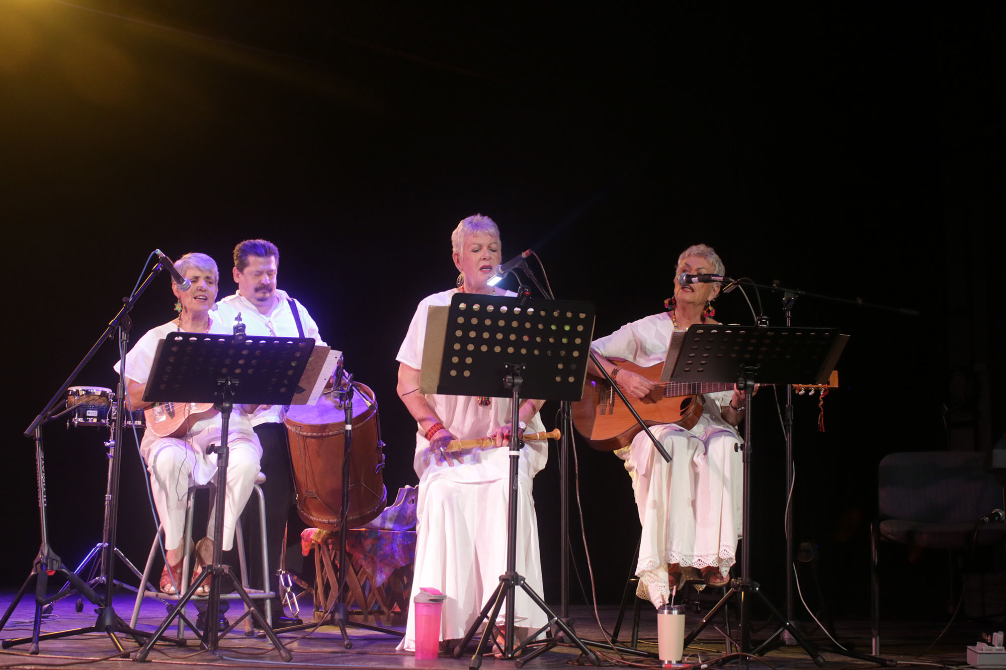 *Luisa Velasco, Aránzazu Velasco, Edna Paulina Carrillo, Lupita Fuentes, Maren Siewert y Dorit Siewert ofrecieron un repertorio de lucha en contra de la maquinaria mediática que promueve sin tregua lo tumbado y lo bélico.