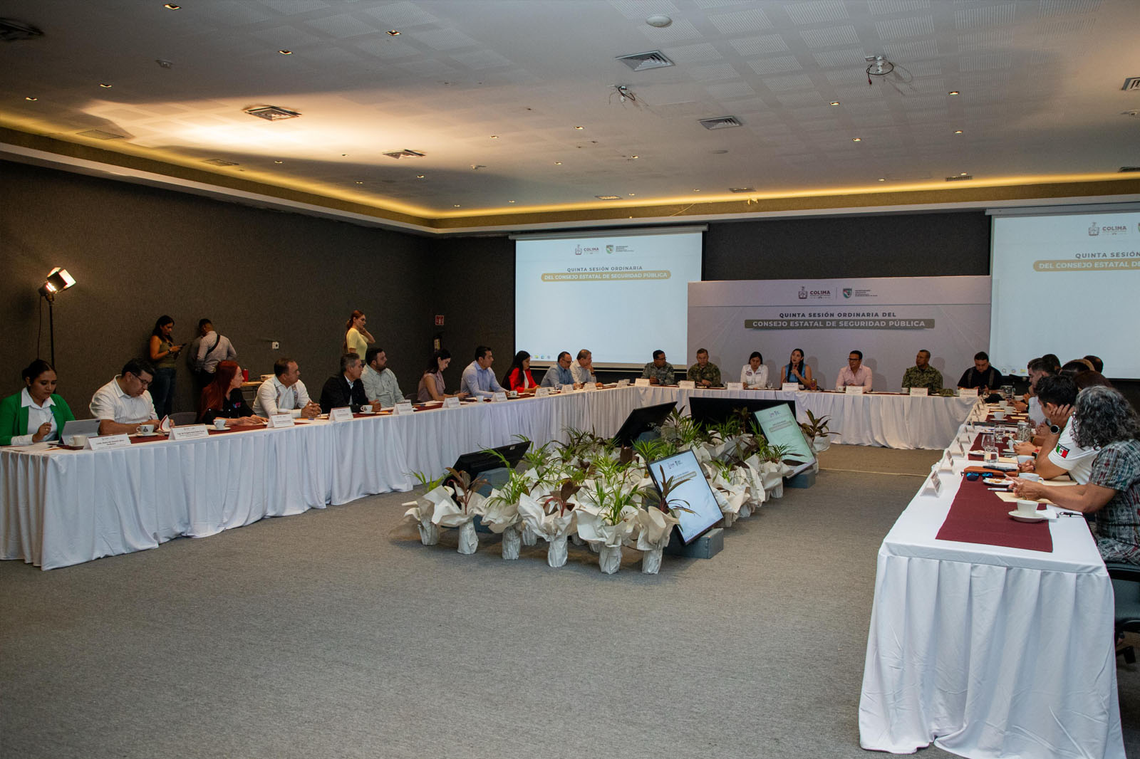 El presidente municipal de Tecomán, Armando Reyna Magaña, asistió este día a la Quinta Sesión Ordinaria del Consejo Estatal de Seguridad Pública, encabezada por la gobernadora del estado, Indira Vizcaíno Silva; un espacio estratégico para fortalecer las políticas que garantizan la protección de las familias en Colima.