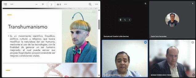 Durante su participación, ambos destacaron que el transhumanismo, apoyado en los avances tecnológicos, plantea la posibilidad de que los seres humanos puedan modificar genéticamente a su descendencia para retrasar el envejecimiento y potenciar sus capacidades intelectuales, físicas, psicológicas y humanas. Expusieron también los retos jurídicos y bioéticos que esto implica, enfatizando la necesidad de un marco normativo que regule estas prácticas.