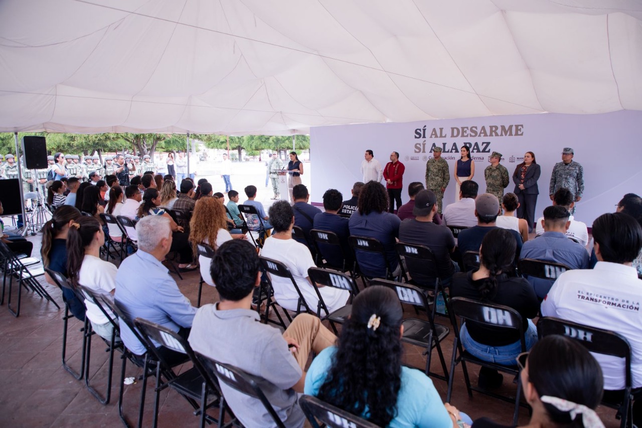 La gobernadora Indira Vizcaíno Silva inició este viernes en Manzanillo la campaña ‘Sí al Desarme, Sí a la Paz’, donde expresó que este canje de armas promueve la cultura de la paz y la seguridad ciudadana, y que se realiza a través de la entrega voluntaria, segura y anónima de las armas.