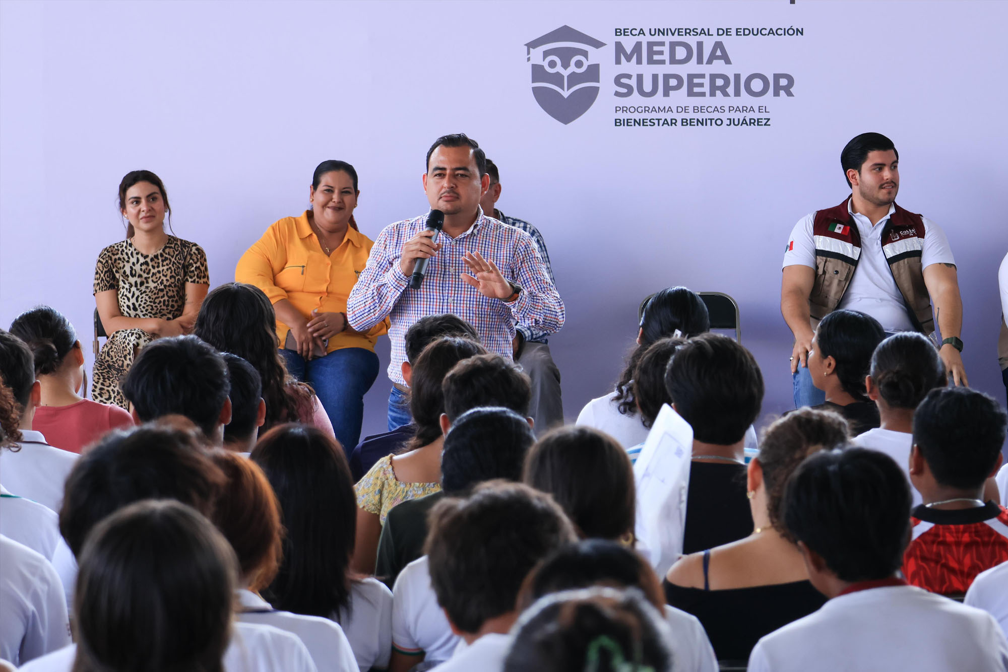 Asimismo, exhortó a las y los beneficiarios a valorar este apoyo, al tratarse de un gran esfuerzo del Gobierno de México y, sobre todo, del pueblo de México, quien es quien paga las becas. “Si hacen las cosas bien, le están respondiendo al pueblo de México”, puntualizó.