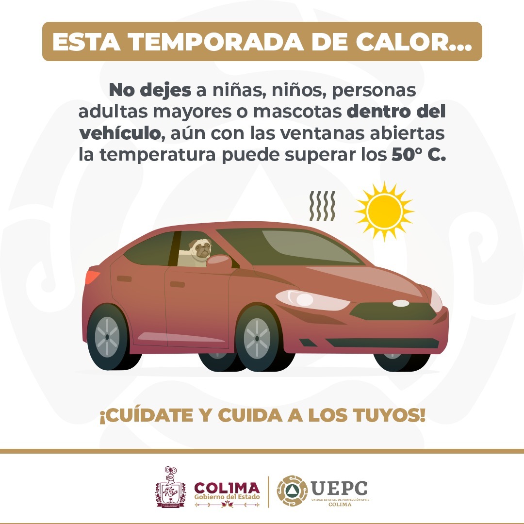La Unidad Estatal de Protección Civil (UEPC) del Gobierno del Estado de Colima exhorta a la población a extremar precauciones, pues persiste la onda de calor en 17 entidades, por lo que recomienda evitar la exposición prolongada a los rayos solares durante las horas de mayor intensidad -de 11:00 de la mañana a 3:00 de la tarde-, pues el Servicio Meteorológico Nacional (SMN) pronostica para este martes que las temperaturas en esta entidad oscilarán entre 40 a 45 grados centígrados, que representa un alto riesgo de sufrir insolación o ‘golpe de calor’.