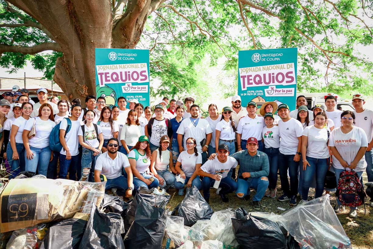 Con el fin de promover la cultura de paz, la prevención de adicciones y el respeto al medioambiente a través de actividades de participación ciudadana, este miércoles 14 de mayo más de 1,400 integrantes de la comunidad universitaria, encabezados por el rector Christian Jorge Torres Ortiz Zermeño, se sumaron a la Jornada Nacional Tequios por la Paz y las Adicciones, con acciones como recolección de basura en playas y avenidas; esto en los cinco campus que conforman la Universidad de Colima.