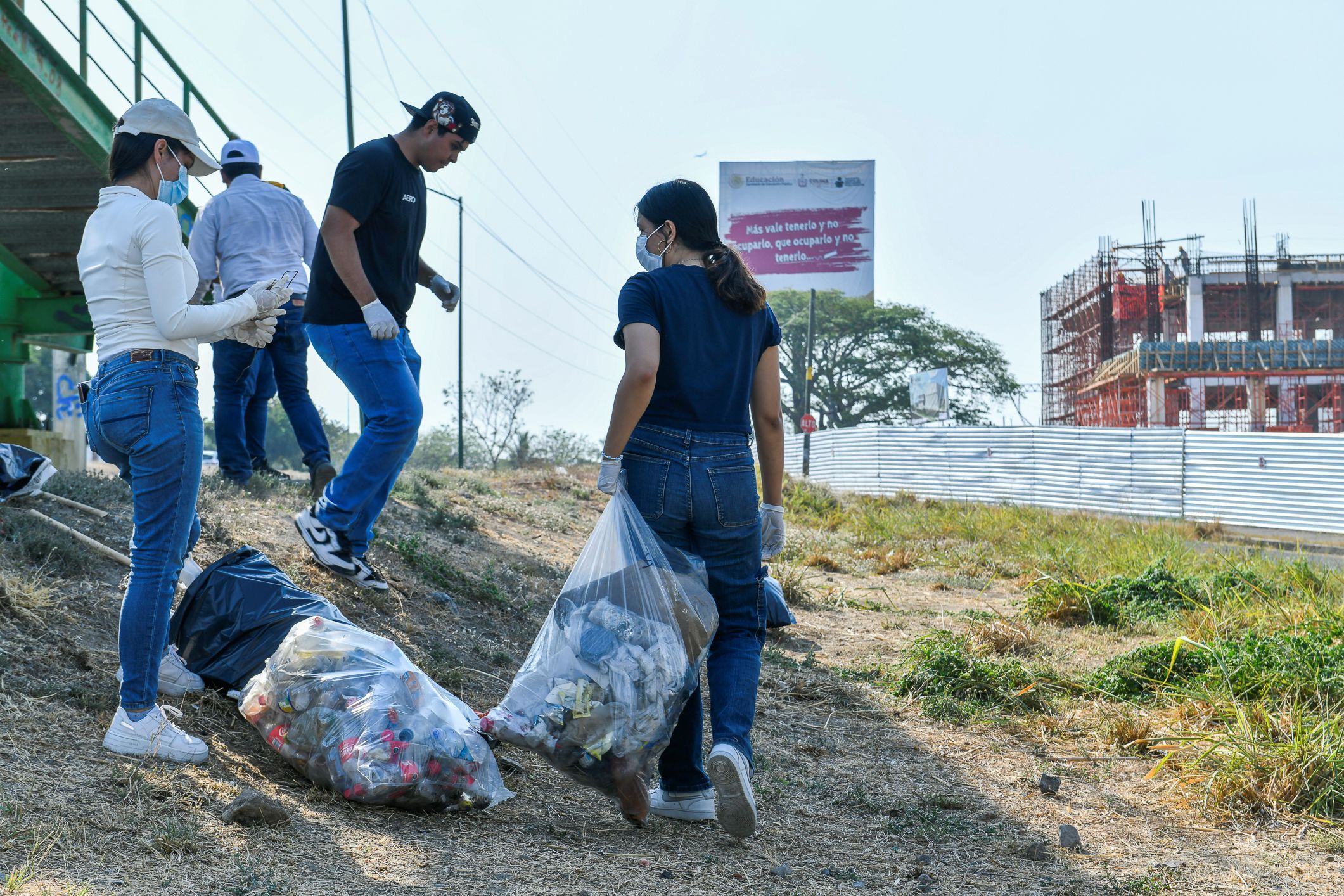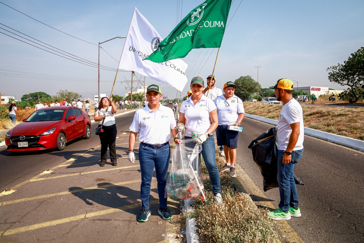 En la Delegación Villa de Álvarez, la comunidad universitaria, integrada por 171 personas, 67 mujeres y 23 hombres, juntó basura, limpió y barrió el área verde que divide a las colonias El Yaqui y Rancho Blanco.