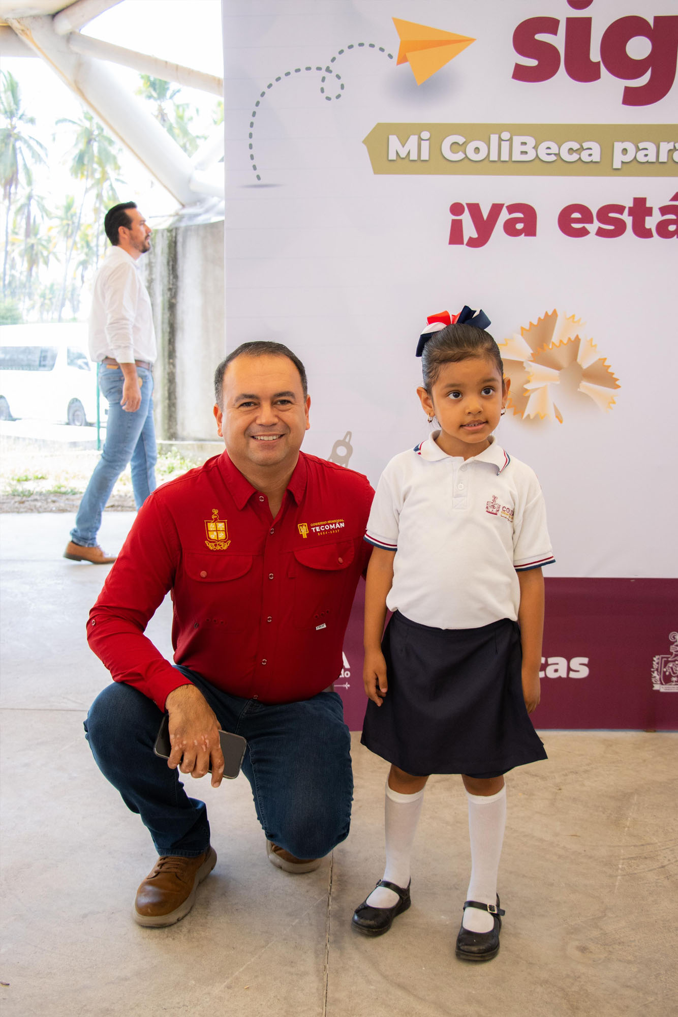 Este viernes, el presidente municipal de Tecomán, Armando Reyna Magaña, acompañó a la secretaria de Bienestar, Inclusión Social y Mujeres del gobierno del Estado, Viridiana Valencia Vargas, en la entrega de apoyos del programa “Mi ColiBeca para empezar” a niñas y niños del municipio.