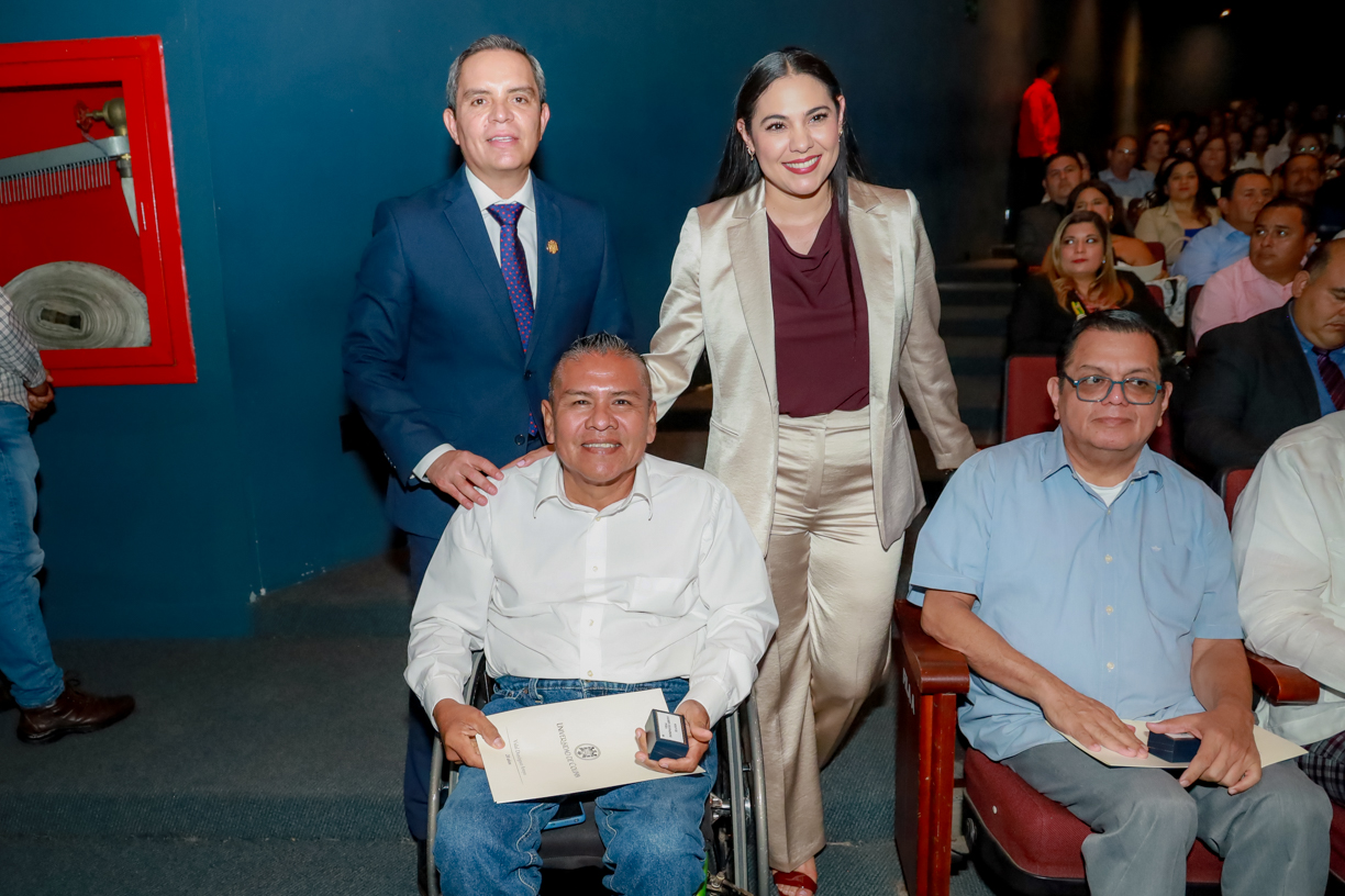 “Las y los hoy homenajeados -continuó- decidieron entregar los mejores años de su vida profesional a las funciones sustantivas de la Universidad: la docencia, la investigación científica, la extensión de la cultura y la vinculación social. De esta manera, los trabajadores administrativos y de servicios, junto con quienes se desempeñan en las diferentes modalidades académicas, no sólo sirven a la Casa de Estudios, sino que benefician con su saber y su hacer al pueblo de Colima”.