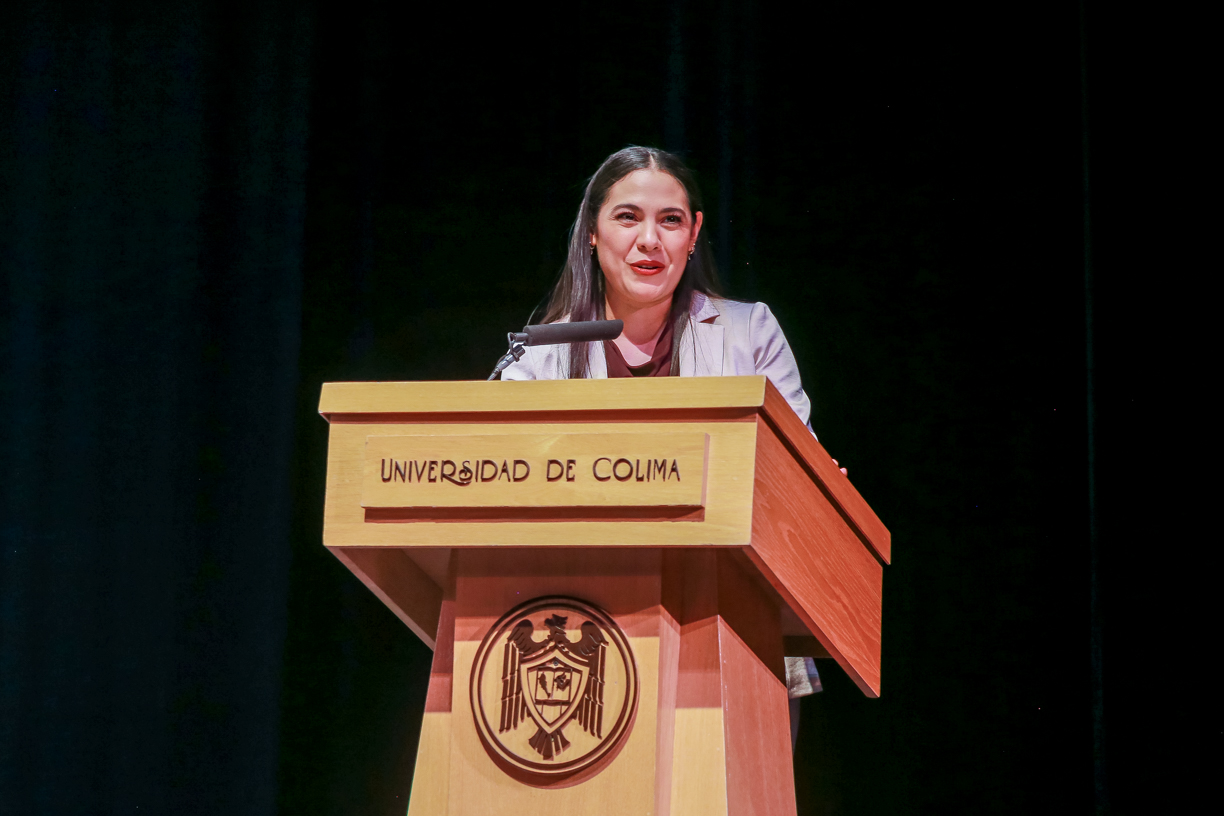 Indira Vizcaíno reconoció que la Universidad de Colima es la institución pública del sector educativo con mayor cobertura en el estado. “Mi alma mater supone, para los y las habitantes de toda la región occidental del país, una oportunidad para formarse como ingenieros y licenciados, o de obtener un posgrado en la rama del conocimiento por el que sienten vocación”.