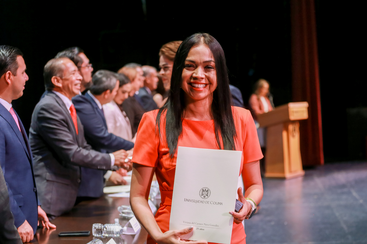 *“Aquí se rinde tributo, por sus años de servicio, a la lealtad y la perseverancia de universitarios abocados a las diferentes tareas que esta Universidad realiza en favor de Colima”. Indira Vizcaíno, gobernadora.