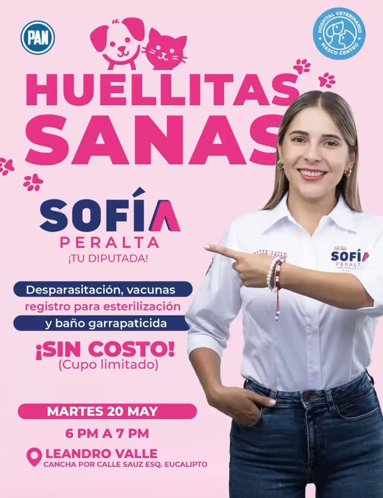 Con el firme compromiso de apoyar a las familias y al bienestar animal, la diputada local Sofía Peralta lanzó este martes la campaña “Huellitas Sanas”, una jornada que llevará servicios veterinarios gratuitos a diversas colonias de Villa de Álvarez, con especial énfasis en la esterilización responsable, que representa un ahorro directo de hasta $2,000 pesos por mascota.
