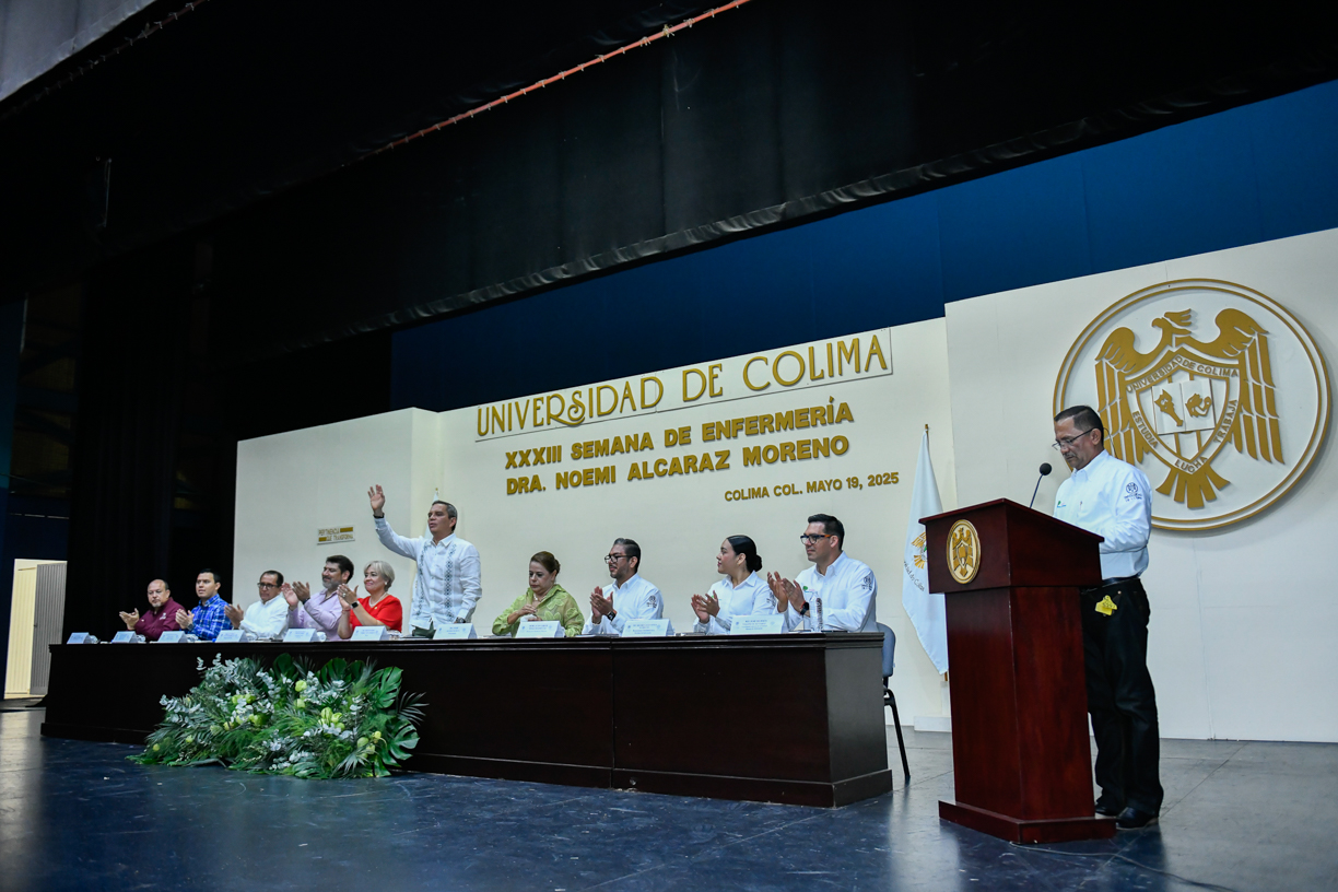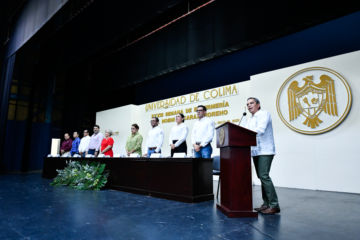 Este lunes, el rector de la Universidad de Colima, Christian Torres Ortiz Zermeño, inauguró la XXXIII Semana de Enfermería, “Dra. Noemi Alcaraz Moreno”, en el Paraninfo Universitario. Durante esta edición, la número 33, se realizarán 28 talleres, 5 conferencias plenarias, presentación de carteles, panel de análisis de investigación, además de actividades culturales y deportivas que reflejan la riqueza la riqueza de la enfermería.