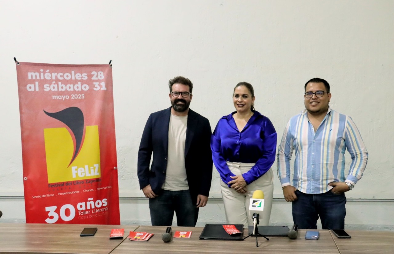 En rueda de prensa con los medios de comunicación, la presidenta municipal Magali Casillas Contreras; Leonardo Franco Medina, director de Festivales; y Michel Iván Vega Torres, jefe de la Escuela de la Música; anunciaron la realización del FeLiZ, que en esta cuarta edición estará dedicado a los 30 años del Taller Literario de la Casa de la Cultura, con el reconocimiento a los escritores quienes fueron alumnos del titular de este curso de formación artística, el maestro Ricardo Sigala.