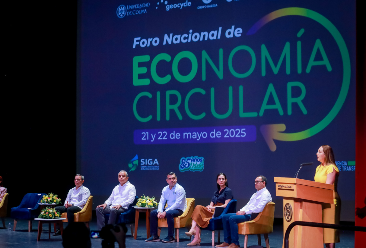 Con el objetivo de reflexionar, compartir experiencias y generar propuestas para el mejoramiento y reutilización de recursos naturales en beneficio del medio ambiente, se está realizando en la Universidad de Colima el primer Foro Nacional de Economía Circular los días 21 y 22 de mayo. El evento, organizado por el Voluntariado de la Universidad de Colima y el Centro Universitario de Gestión Ambiental a través del Sistema Universitario de Gestión Ambiental (SIGA), reúne a especialistas académicos, estudiantes, autoridades federales, estatales y municipales, empresarios y miembros de la sociedad civil.