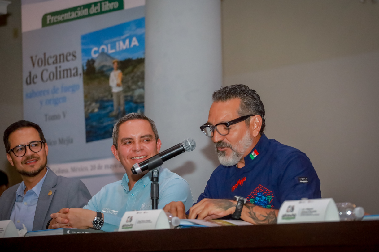 Agregó que los volcanes de Colima han tenido y tienen una poderosa influencia en los habitantes de esta región en temas como biodiversidad “y sobre lo que comemos y cómo lo comemos; y ese regalo de la naturaleza y la geología y su impacto sobre nuestras vidas, rutinas y costumbres culinarias es lo que el chef Nico Mejía y su equipo analizan en este libro”.