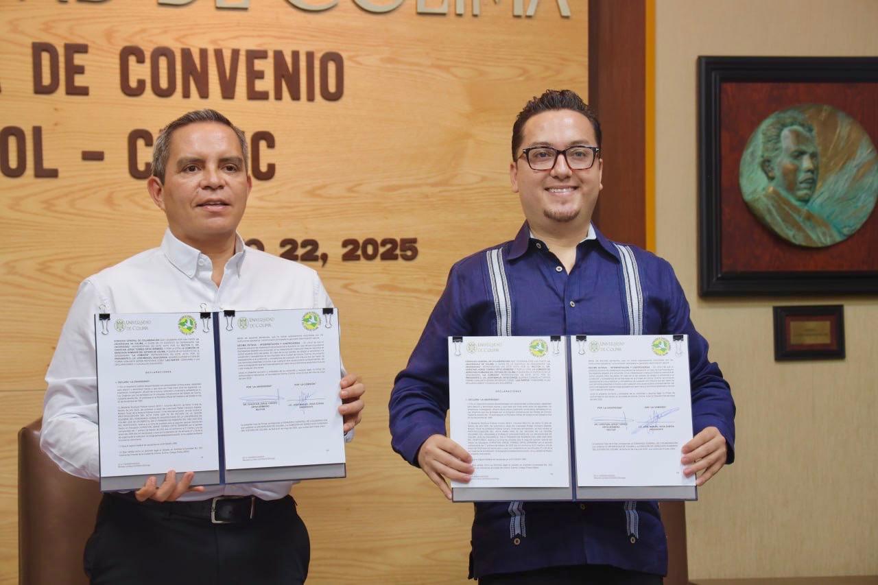 En el mismo sentido, y en un esfuerzo por fortalecer la educación y la vinculación académica, la CDHEC firmó un convenio de colaboración con la Universidad de Colima, representada por su rector, Dr. Christian Jorge Torres Ortiz Zermeño. Este acuerdo permitirá que estudiantes realicen su servicio social y prácticas profesionales en la Comisión, además de fomentar la educación continua a través de diplomados, conferencias y foros especializados en derechos humanos. También promoverá iniciativas conjuntas para la difusión de la cultura de paz y la democratización del acceso a la cultura, integrando a jóvenes en actividades de promoción y sensibilización.