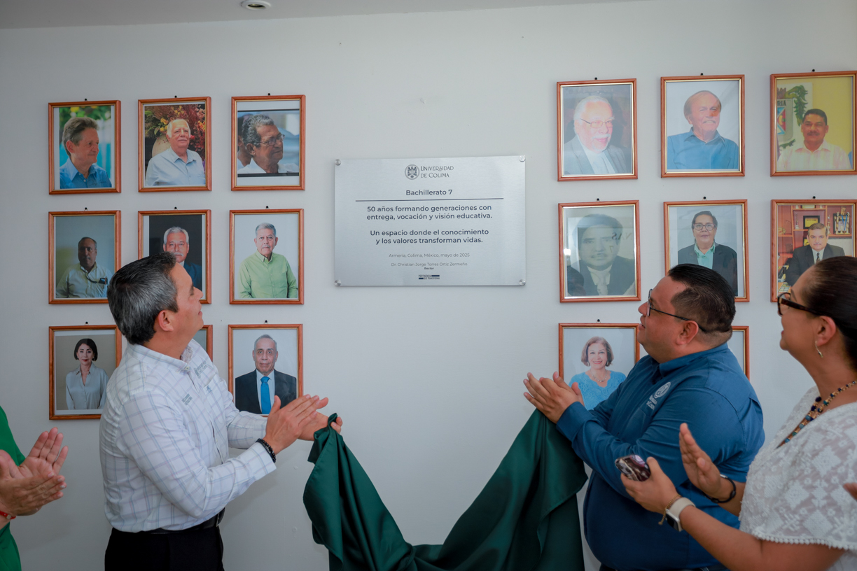Como parte de las actividades para conmemorar el 50 aniversario del Bachillerato 7 de la Universidad de Colima, ubicado en Armería, el rector Christian Jorge Torres Ortiz Zermeño develó una placa conmemorativa y ofreció una conferencia dirigida a las y los estudiantes, en la que los exhortó a construir su proyecto de vida desde la congruencia, el equilibrio emocional y el compromiso con su propia felicidad.