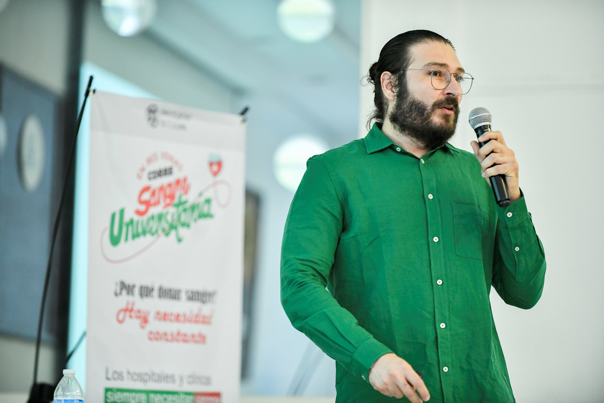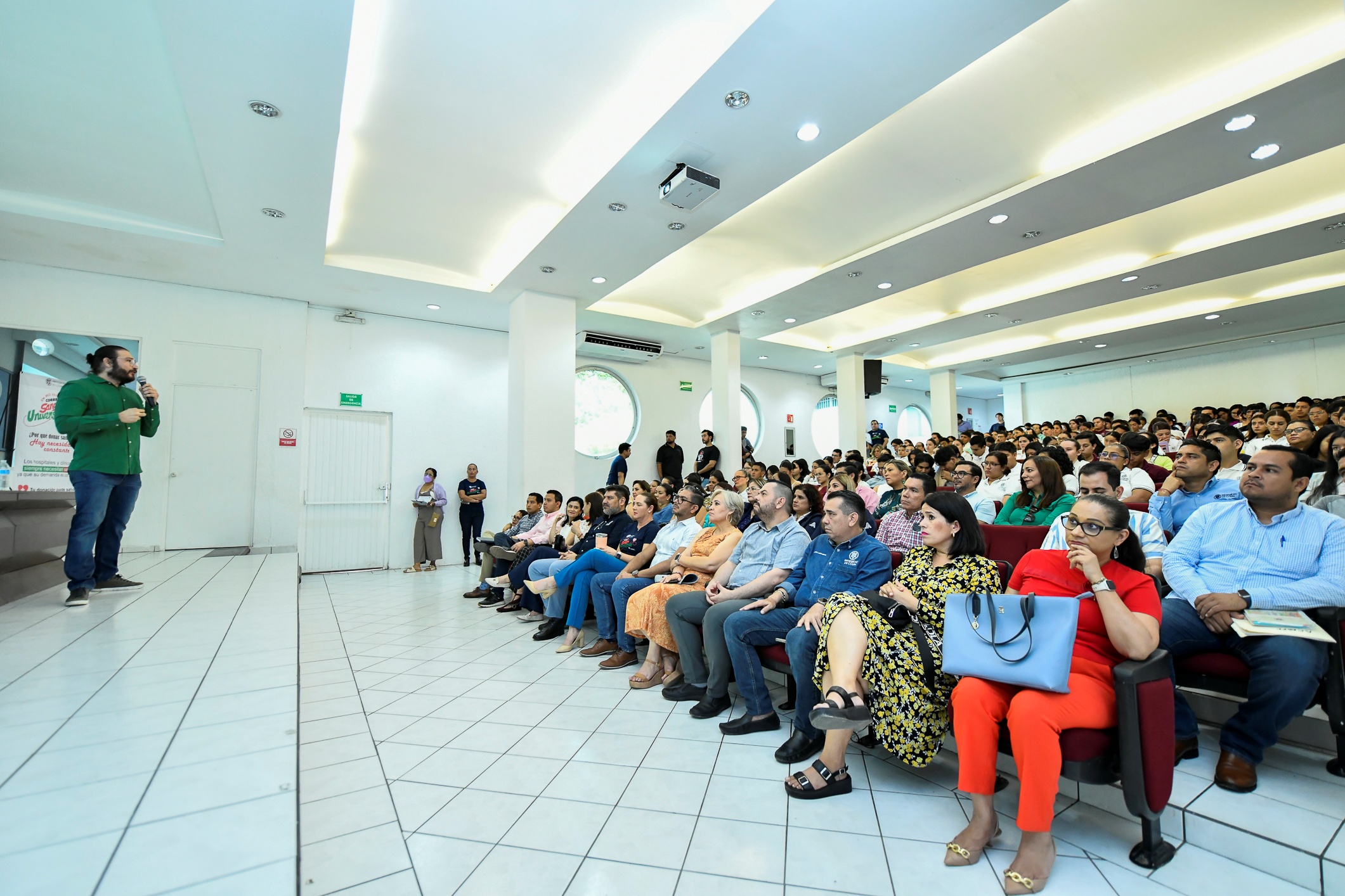 Omar Nadir Guillén, subdirector del Centro Estatal de Transfusión Sanguínea, dictó la conferencia “La importancia de donar vida: una gota de esperanza”, en el Auditorio de la Facultad de Enfermería, como parte de las actividades que realiza el Voluntariado de la Universidad de Colima (UdeC) para conmemorar el Día Mundial del Donante de Sangre y sensibilizar a las personas sobre la importancia de la donación.