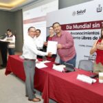 Durante el evento, al que también asistieron la coordinadora estatal del IMSS-Bienestar, Laura Dueñas Mendoza; la diputada Karen Jurado Escamilla, presidenta de la Comisión de Salud y Deporte del Congreso del Estado, y el comisionado estatal de Salud Mental y Adicciones, Guillermo Blanco Govea, el secretario de Salud entregó un reconocimiento a Fernando Rosas Padilla, jubilado de la Secretaría de Salud y ex líder de proyectos en Coespris, por haber cumplido 38 años de servicios con dedicación y entrega a la protección contra riesgos sanitaros, quien en su momento presentó en este evento la ponencia “Juventud, blanco de la industria del tabaco”.