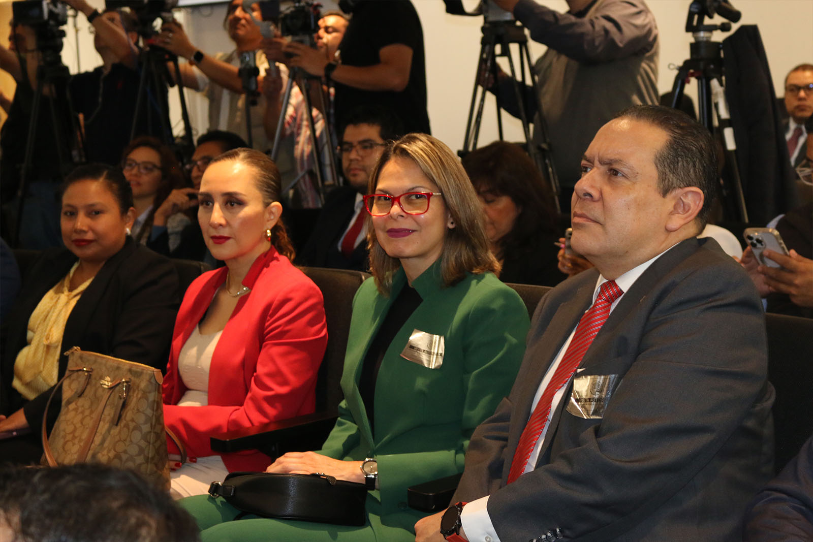 También estuvieron en el presídium los diputados Merilyn Gómez Pozos, presidenta de la Comisión de Presupuesto y Cuenta Pública; María de los Ángeles Ballesteros García, presidenta de la Comisión de Educación; Eruviel Ávila Villegas, presidente de la Comisión de Ciencia, Tecnología e Innovación, y el rector de la Universidad Autónoma de Guerrero, Javier Saldaña Almazán, quien preside la Comisión de Fiscalización de la ANUIES.