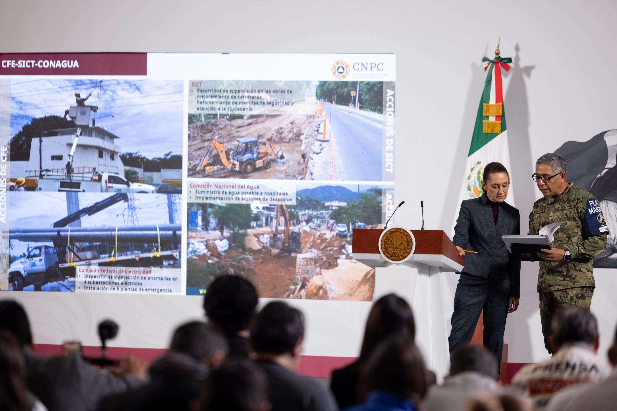 * “Se está en contacto con la Defensa, con la Marina, que están en esta zona. Y podemos informar, realmente, en unas horas cuáles son los efectos en estas poblaciones”, precisó la Jefa del Ejecutivo Federal