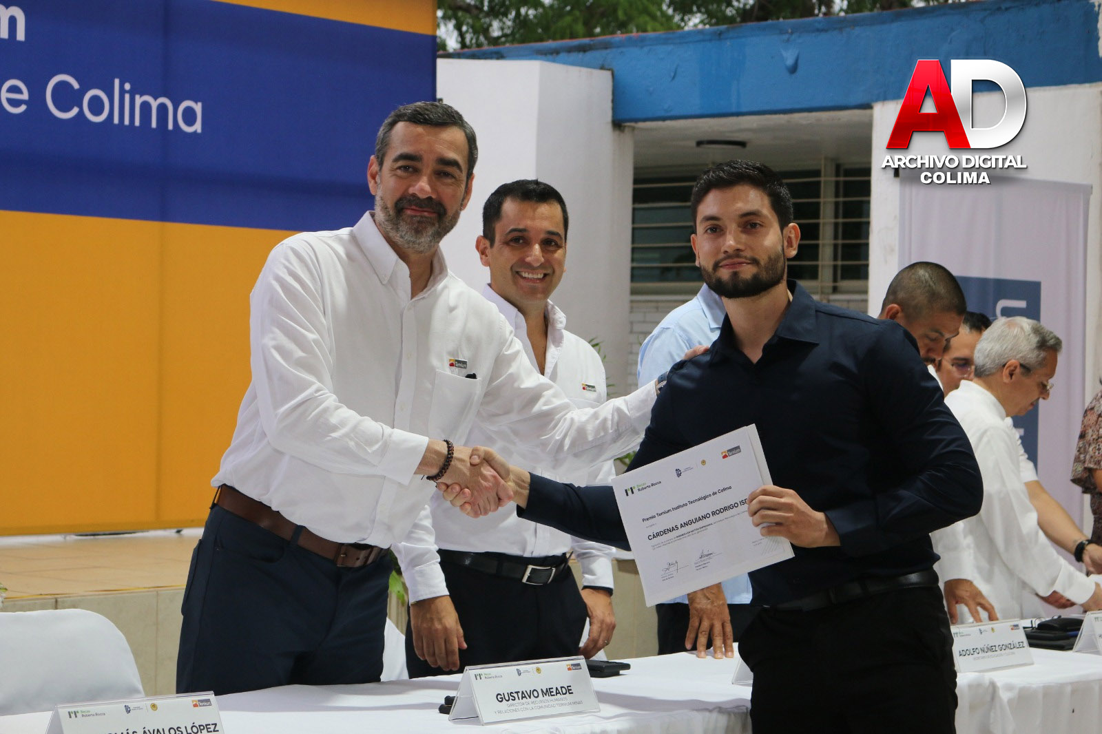 En el presídium, también se contó con la presencia de Gustavo Meade, director de Recursos Humanos y Relaciones con la Comunidad Ternium Minas; Luis Tomás Ávalos López, subdirector de Planeación y Vinculación del Tecnológico de Colima; Lourdes Aldape Sotelo, jefa del departamento de Ingeniería Química y Bioquímica en representación del subdirector académico, Johann Mejías Brito; y José Ángel López Ramírez, jefe del Centro de Cómputo, en representación de la subdirectora de Servicios Administrativos, Mónica Siblina Martínez Solís.