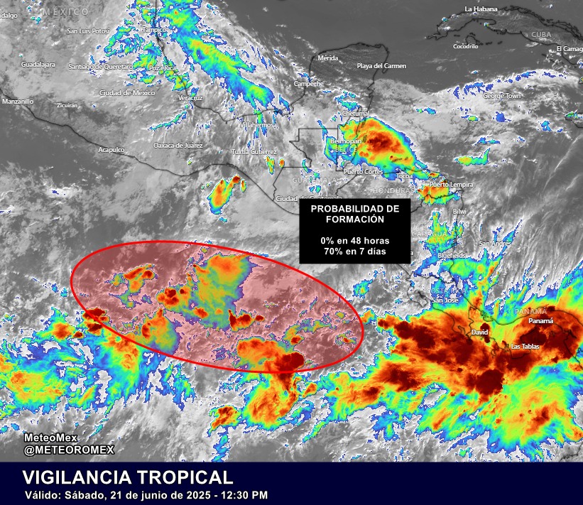 Se prevé que a inicios de la próxima semana surja una zona de inestabilidad con potencial ciclónico, la cual podría fortalecerse a mediados de semana mientras se desplaza con dirección oeste-noroeste, en condiciones ambientales favorables para su desarrollo.