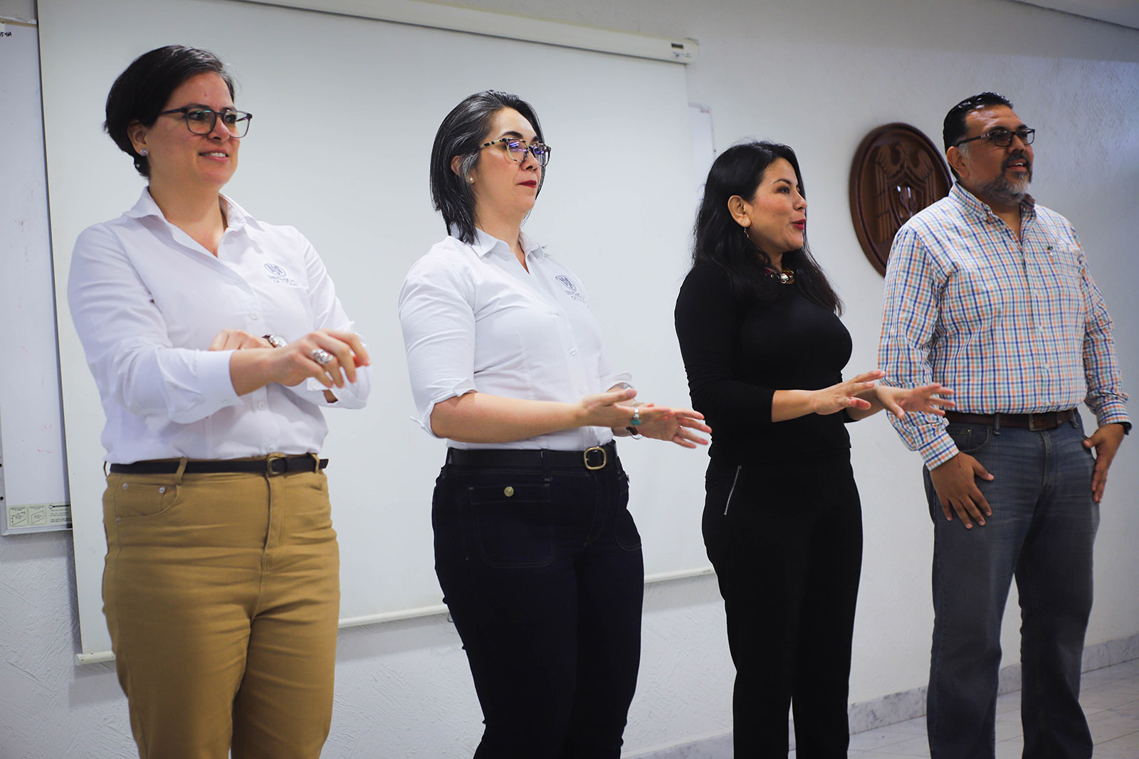 La capacitación estuvo a cargo de la Mtra. Mónica González Torres, directora para la Atención Integral de la Discriminación y la Violencia de Género; la Mtra. Mayra González Flores, directora del Centro Universitario para la Igualdad y los Estudios de Género y el Dr. Francisco Antar Martínez Guzmán, académico de la Facultad de Psicología.