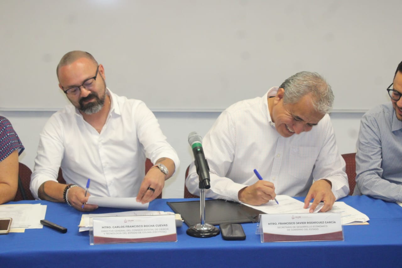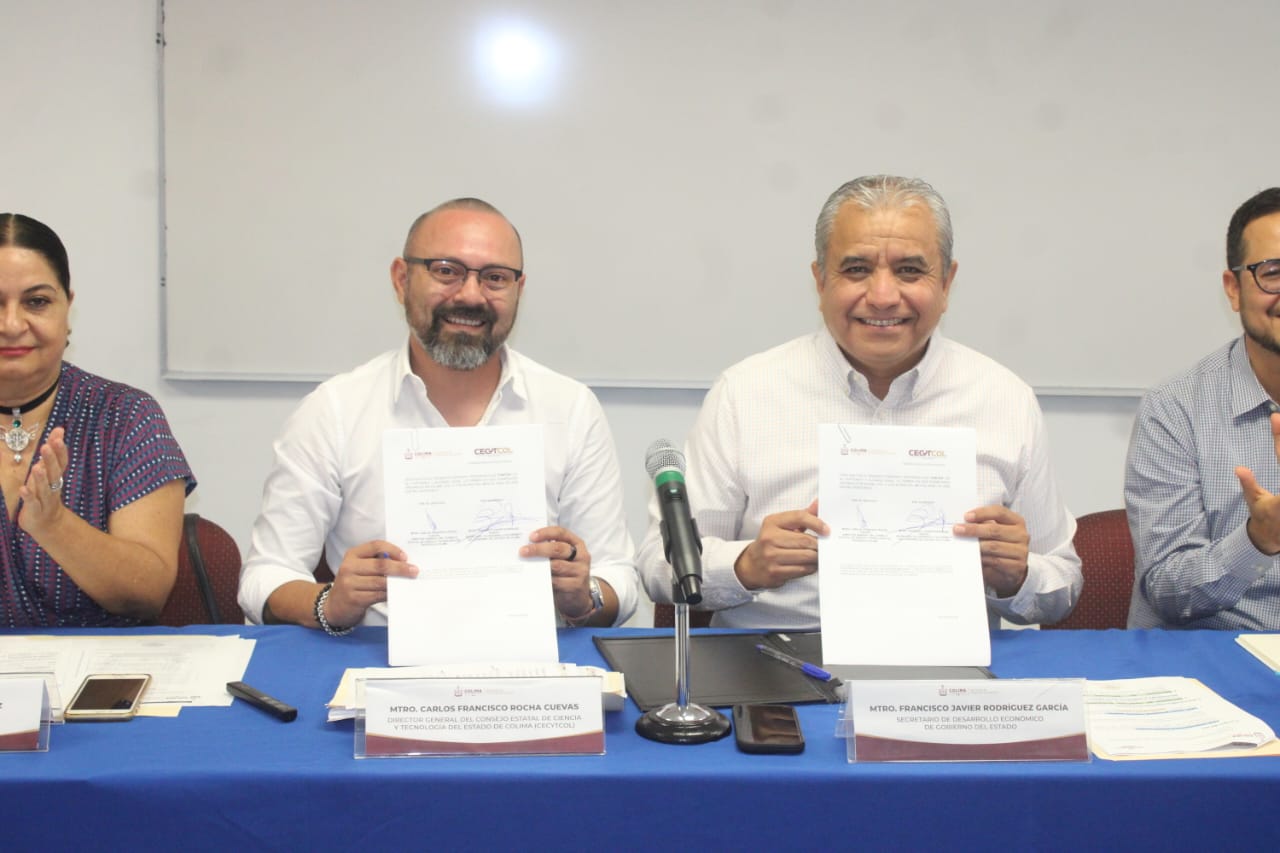 Con el objetivo de fortalecer el desarrollo económico del estado mediante la promoción de la ciencia, la tecnología y la innovación, este día se llevó a cabo la firma de un convenio de colaboración entre la Secretaría de Desarrollo Económico del Gobierno del Estado de Colima (Sedeco) y el Consejo Estatal de Ciencia y Tecnología de Colima (Cecytcol).