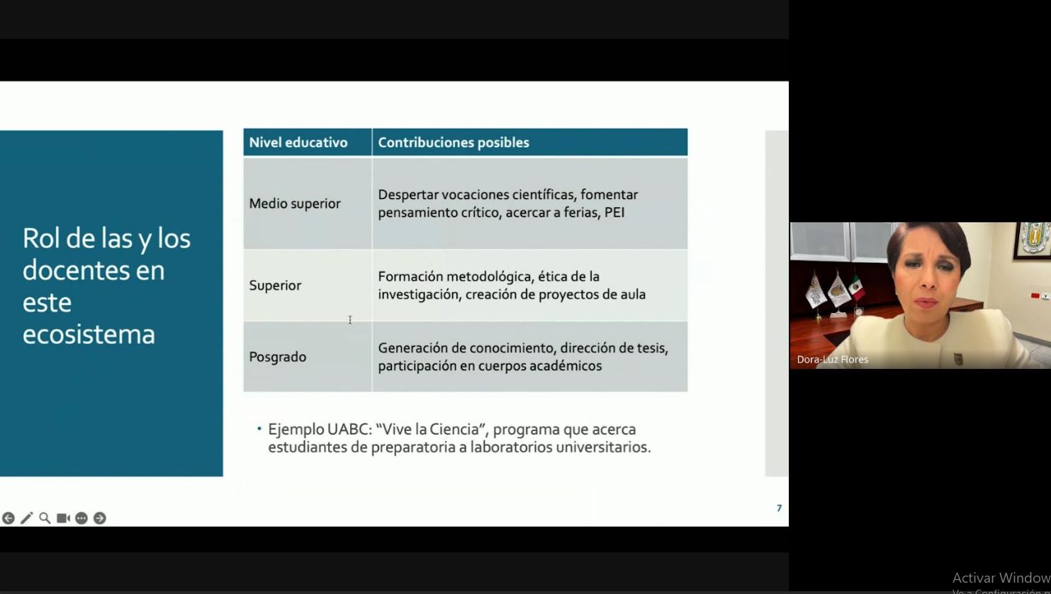 El proyecto más importante de las universidades, dijo, es vincular a estudiantes de preparatoria con temas de ciencia. “En la Universidad Autónoma de Baja California (UABC) hemos impulsado el programa ‘Vive la ciencia’, que permite a estudiantes de preparatoria visitar laboratorios universitarios, a los investigadores, y realizan prácticas científicas. Este tipo de iniciativas despiertan vocaciones, rompen estereotipos de género y descentralizan el conocimiento”.