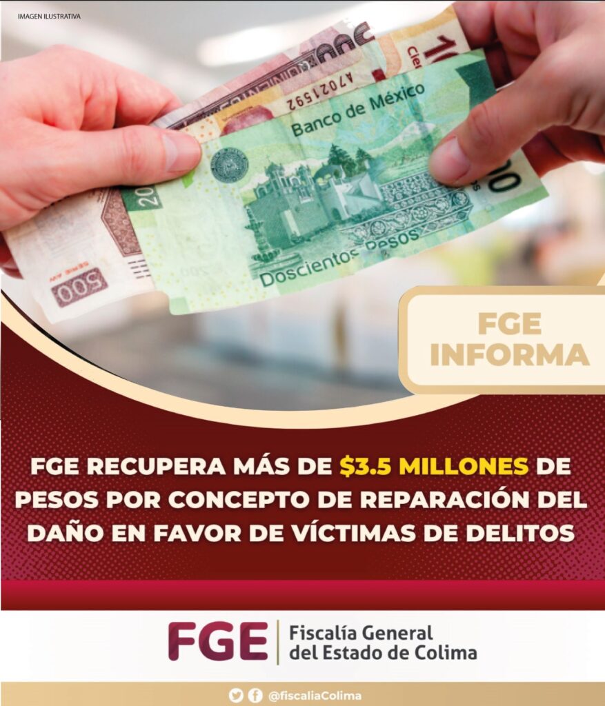 Por su parte, la Dirección de Soluciones Alternas llevó a cabo 138 acuerdos reparatorios, logrando recuperar $3,571,472.24 (tres millones quinientos setenta y un mil cuatrocientos setenta y dos pesos 24/100 M.N.) por concepto de reparación del daño en beneficio de las víctimas. Asimismo, se recuperaron 5 bienes y se establecieron 49 compromisos de respeto entre las partes. En cuanto a las sesiones de mediación, se llevaron a cabo 294 en los municipios de Colima, Manzanillo, Villa de Álvarez y Tecomán.