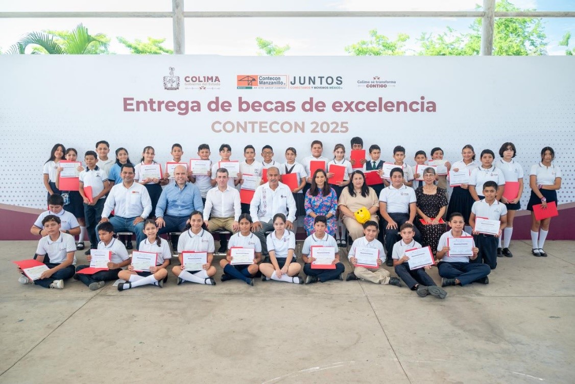 Manzanillo, Col. julio 2025.- Por cuarto año consecutivo, CONTECON MANZANILLO otorga Becas de Excelencia a estudiantes de último año de primaria que destacaron en la Olimpiada Estatal del Conocimiento, organizada por la Secretaría de Educación Pública (SEP). Esta iniciativa reconoce el esfuerzo, la dedicación y el alto rendimiento, incentivando así su desarrollo personal y académico.