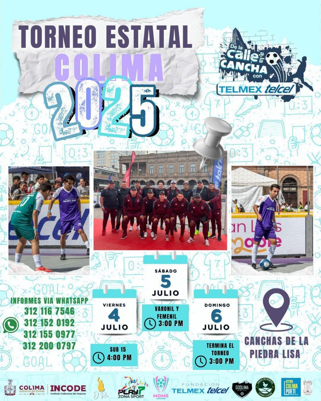 De este torneo se realizará un selectivo de las y los mejores jugadores de ambas ramas para representar a Colima en el torneo nacional a llevarse a cabo en Playa del Carmen, y que, a su vez, las y los ganadores del nacional representarán a nuestro país en la Copa Mundial Homeless World Cup para las y los interesados en inscribirse en a este torneo podrán comunicarse vía mensaje a la aplicación whats app: 312 116 7546, 312 152 0192, 312 155 0971 y 312 200 0797