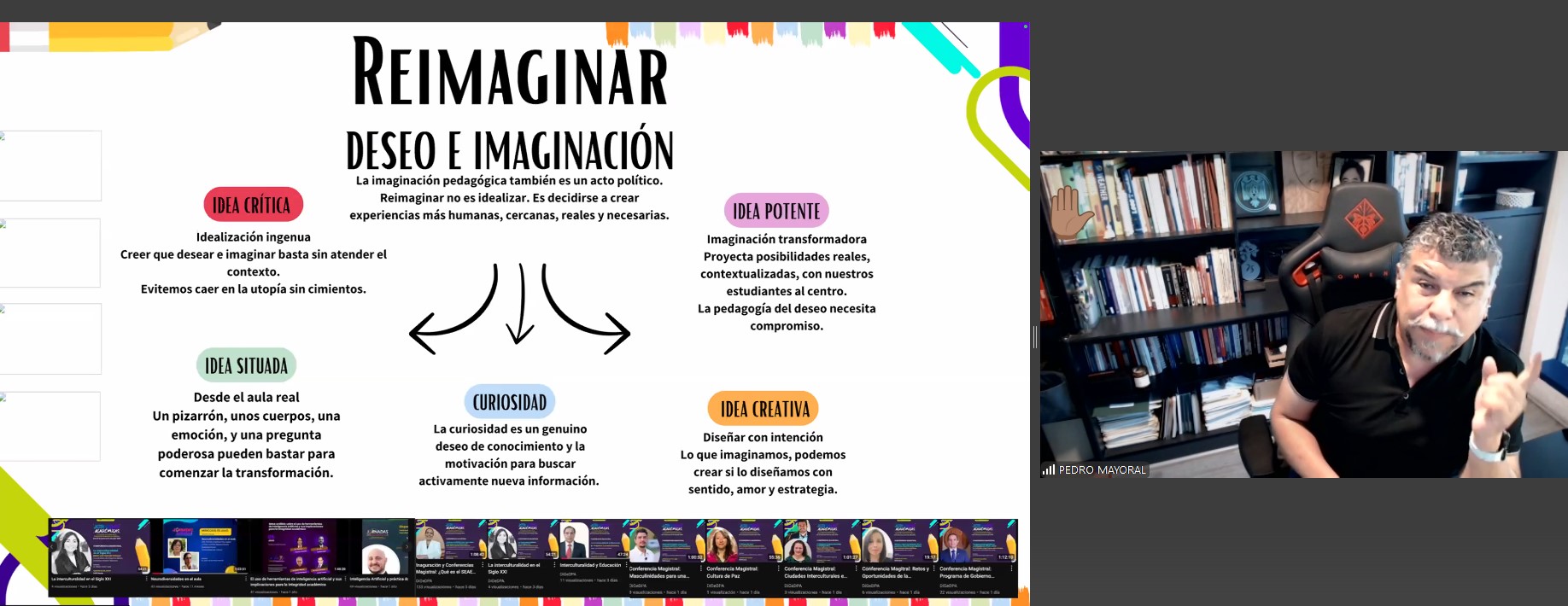 Finalmente, Pedro Mayoral enfatizó que la imaginación pedagógica no nace en el vacío: “Se alimenta de lecturas, de la escucha atenta a los estudiantes, del diálogo con colegas y de un deseo genuino por hacer las cosas de manera distinta. Las ideas que transforman tienen raíces en el aula, pero también alas que se nutren del deseo y la imaginación. Eso es lo que realmente transforma”.