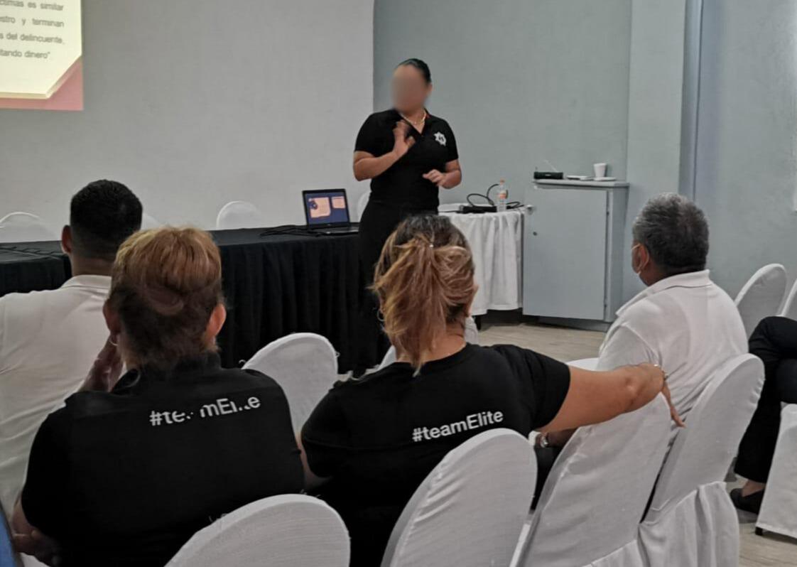 De igual manera, en el marco del programa Empresa Segura, se llevó a cabo una capacitación con el tema extorsión telefónica al personal del Hotel ‘María Isabel’, ‘Elite Gym’ y los locales ubicados en el portal de dicho hotel, donde se abordaron las principales técnicas utilizadas en este delito y se brindaron recomendaciones puntuales para prevenir y actuar ante una posible extorsión, entregando, además, material informativo sobre el tema, donde se incluyen los números de emergencia 911, para denuncias anónimas 089 y el 075 de la Línea Mujer.
